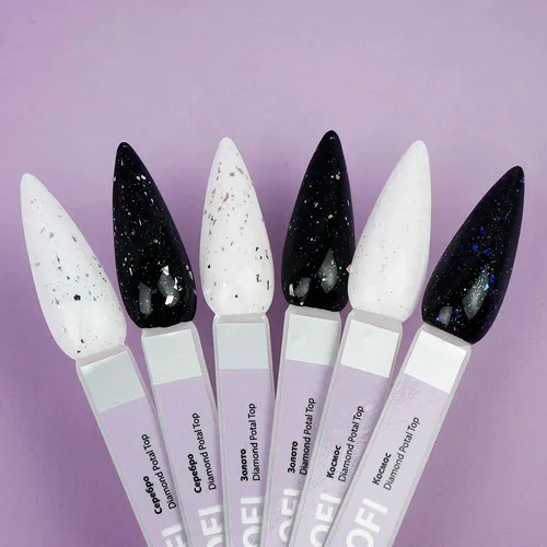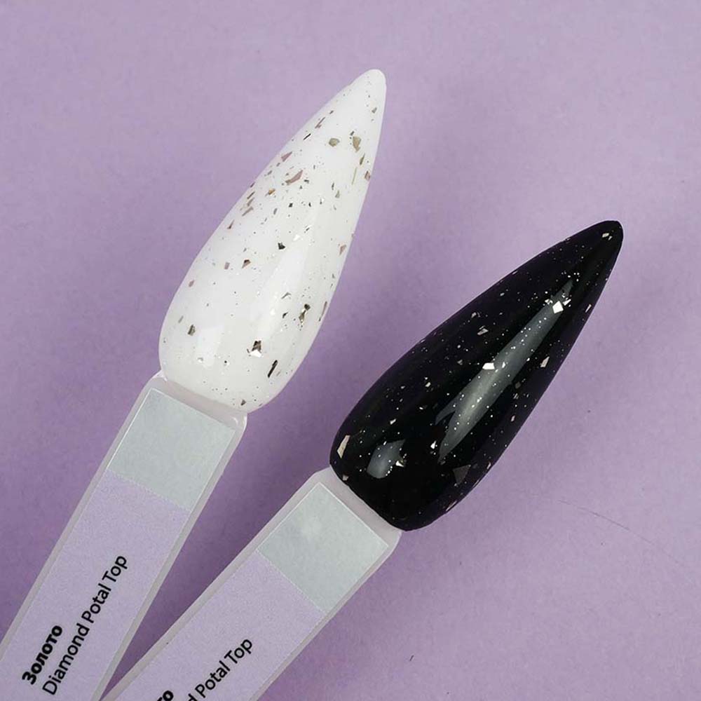 Top TUFI profi PREMIUM is an updated, improved, perfect top for gel polish, which creates a high-quality decorative coating on the natural nail plate. Diamond Potal Top contains potal pieces and shimmer. The top is easy to use, uniformly envelops the plate with a hard film. Top for gel polish has a thick consistency, will not flow onto the cuticle and side ridges. Top Tufi Profi has a durable coating, does not crack, provides application with ease and pleasure. The top does not have a sticky layer, so it does not require stickiness removal. The maximum amount of crumbs and shimmer, allows you to perfectly apply the top with crumbs from the first layer.