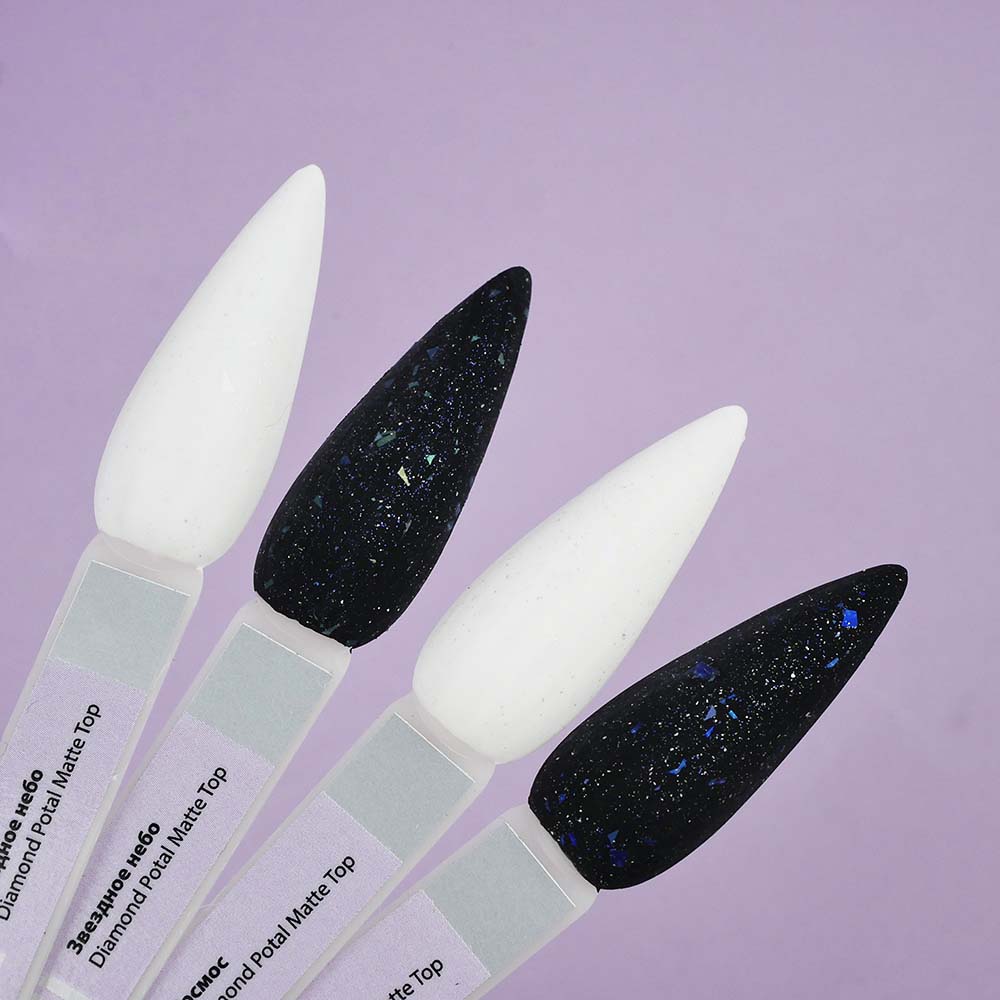 Top TUFI profi PREMIUM is an updated, improved, perfect top for gel polish, which creates a high-quality decorative coating on the natural nail plate. Diamond Potal Top contains potal pieces and shimmer. The top is easy to use, uniformly envelops the plate with a hard film. Top for gel polish has a thick consistency, will not flow onto the cuticle and side ridges. Top Tufi Profi has a durable coating, does not crack, provides application with ease and pleasure. The top does not have a sticky layer, so it does not require stickiness removal. The maximum amount of crumbs and shimmer, allows you to perfectly apply the top with crumbs from the first layer.