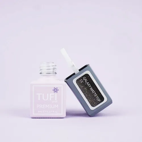 TUFI profi PREMIUM Galaxy Matte Top is an updated, improved, perfect top for gel polish, which creates a high-quality decorative coating on the natural nail plate. The finish coating is easy to use, uniformly envelops the plate with a hard film. Top for gel polish has a thick consistency, will not flow onto the cuticle and side ridges. The TUFI profi PREMIUM Galaxy Matte Top works best on dark shades and is barely noticeable on light ones. Top Tufi Profi has a durable coating, does not crack, does not roll, provides application with ease and pleasure.