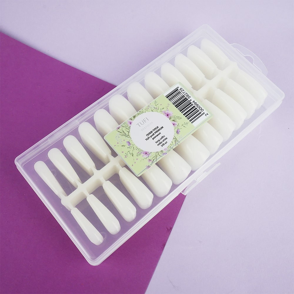 Soak-off gel tips TUFI profi PREMIUM long ballerina milky 240 pcs (0133997)