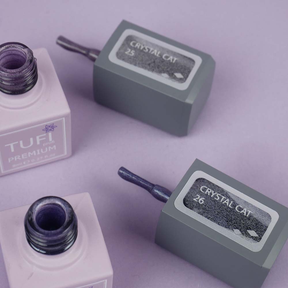 TUFI profi Crystal Cat professional pigmented gel polish combines rich color, convenient consistency, and long-lasting wear. The gel polish has high pigmentation, providing full coverage in just 1–2 coats. Crystal Cat is a stylish way to add a touch of festive sparkle to your nails, even on an ordinary day. The formula contains fine metallic particles that respond to a magnet, creating a captivating cat-eye effect by forming unique patterns in the gel layer before curing.