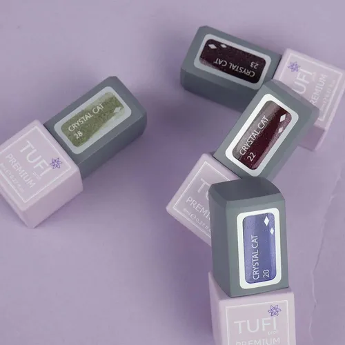 TUFI profi Crystal Cat professional pigmented gel polish combines rich color, convenient consistency, and long-lasting wear. The gel polish has high pigmentation, providing full coverage in just 1–2 coats. Crystal Cat is a stylish way to add a touch of festive sparkle to your nails, even on an ordinary day. The formula contains fine metallic particles that respond to a magnet, creating a captivating cat-eye effect by forming unique patterns in the gel layer before curing.