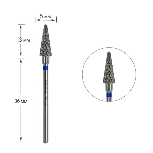 Cutter for manicure TUFI profi PREMIUM carbide cone 161 190 050 blue notch