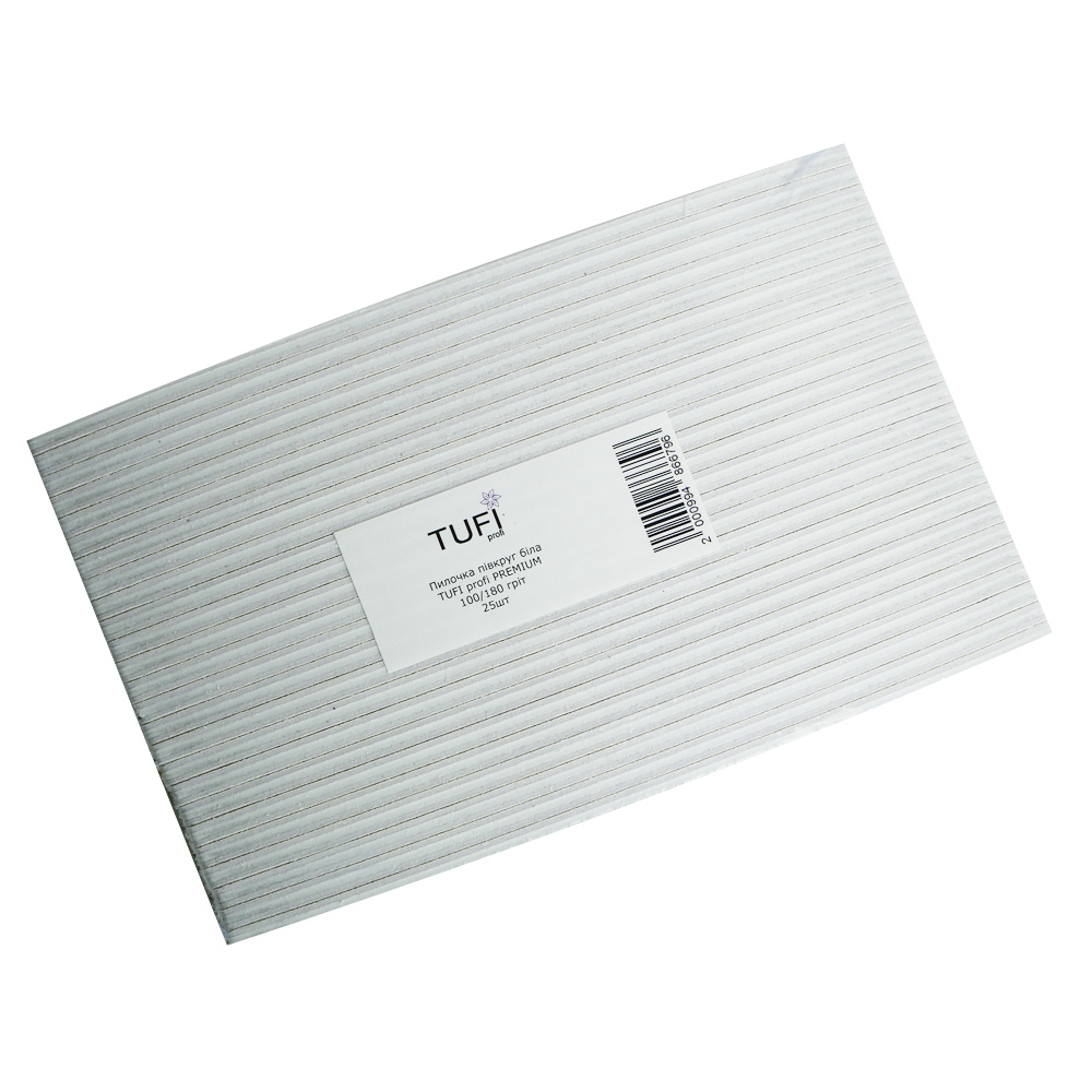 Half-round nail file TUFI profi PREMIUM white 100/180 grit 17,8 cm 25 pcs (0231932)