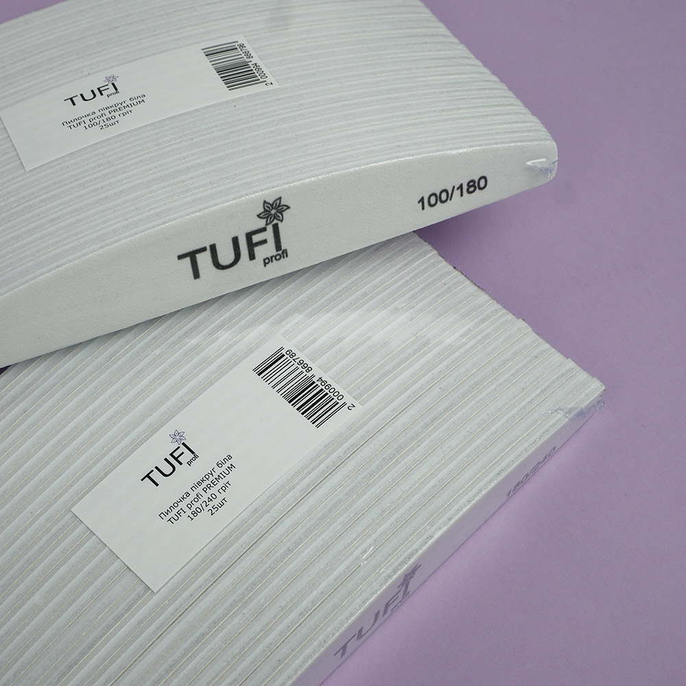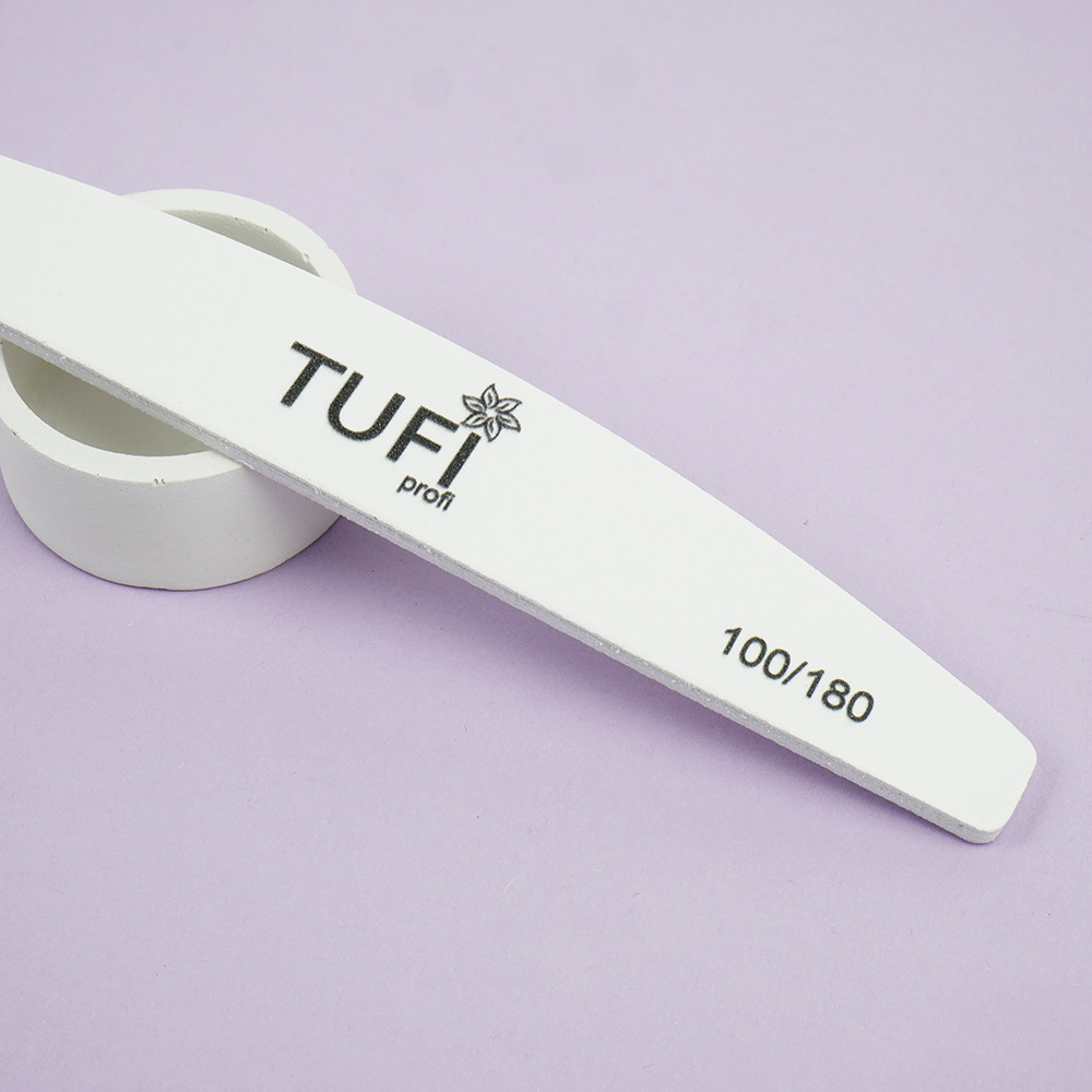 The TUFI profi PREMIUM nail file is designed for fake nails. The file is very convenient to adjust the length and shape of the nails. The TUFI profi PREMIUM nail file does not break and has 2 grits 100 and 180. The side with grit 180 can be used for fake acrylic and gel nails. Also, during the manicure and pedicure procedure, you may need buffs and files. Tufi profi nail file is very light and has a convenient shape and suitable thickness. The file will help you easily create the shape of the nail you have planned the first time.