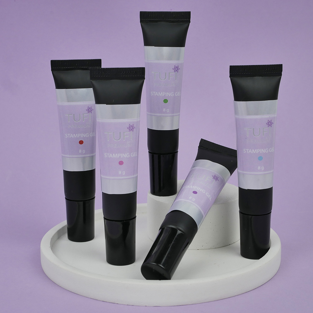 What to do if you want some unusual design on the nails? You can diversify your manicure with juicy and dazzling patterns using different technologies in nail design. One of the easiest for everyone is stamping. This is a method of drawing a picture on the nails using gel polish, a stamp and a stencil. TUFI profi presents a novelty in the premium collection - stamping gel TUFI profi PREMIUM Stamping. These stamping gels have an optimal thickness and dense texture. They will provide easy transfer of nail art using a stamp, filling even the smallest details on the stencil. Drawing with TUFI profi stamping gel can be transferred to regular varnish, gel, as well as extended nails.
