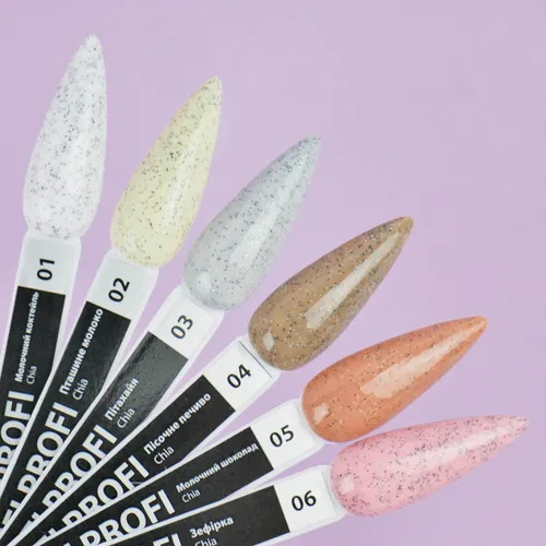TUFI profi Chia Professional Pigmented Gel Polish is a combination of rich color, smooth consistency, and long-lasting wear. Thanks to its high pigmentation, it provides full coverage with just 1–2 coats. The collection includes 11 soft shades with black speckles that create the effect of a quail egg or tropical pitaya. The formula applies easily, self-levels beautifully, and spreads evenly across the nail. Often, one coat is enough due to its excellent pigmentation. This collection is perfect for those who love unique designs and draw inspiration from nature — especially exotic fruits.