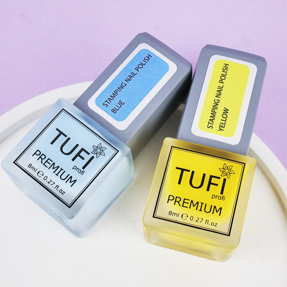 What to do if you want some unusual design on the nails? You can diversify your manicure with juicy and dazzling patterns using different technologies in nail design. One of the easiest for everyone is stamping. This is a method of drawing a picture on the nails using gel polish, a stamp and a stencil. TUFI profi presents a novelty in the premium collection - stamping gel polish TUFI profi PREMIUM Stamping. These stamping polishes have an optimal thickness and dense texture. They will provide easy transfer of nail art using a stamp, filling even the smallest details on the stencil. Drawing with TUFI profi stamping varnish can be transferred to regular varnish, gel polish, as well as extended nails.