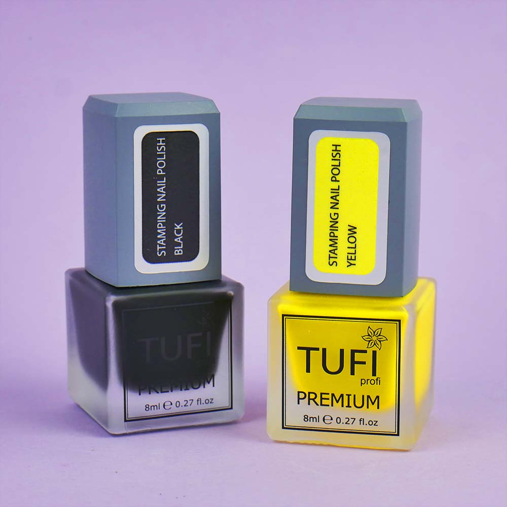 What to do if you want some unusual design on the nails? You can diversify your manicure with juicy and dazzling patterns using different technologies in nail design. One of the easiest for everyone is stamping. This is a method of drawing a picture on the nails using gel polish, a stamp and a stencil. TUFI profi presents a novelty in the premium collection - stamping gel polish TUFI profi PREMIUM Stamping. These stamping polishes have an optimal thickness and dense texture. They will provide easy transfer of nail art using a stamp, filling even the smallest details on the stencil. Drawing with TUFI profi stamping varnish can be transferred to regular varnish, gel polish, as well as extended nails.