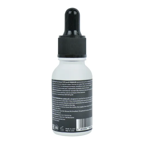 Dry cuticle oil TUFI profi PREMIUM is designed for effective care of the nail plate, without leaving greasy traces or shine on the skin. Enriched with moisturizing and nourishing components, it gently softens the cuticle, prevents dryness and hangnails, promotes healing of small wounds and provides cuticle nourishment throughout the day.