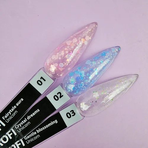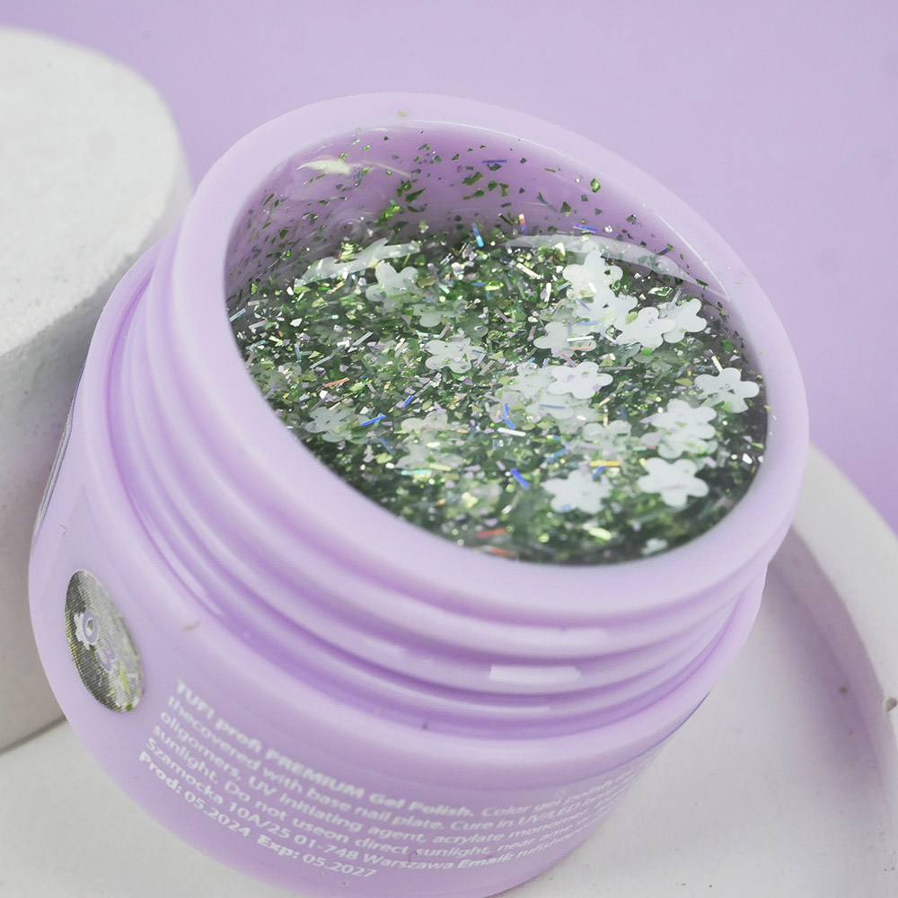 TUFI profi Unicorn professional pigmented gel polish combines rich color, a smooth consistency, and long-lasting wear. With its high pigmentation, it provides full coverage in just 1–2 coats. This gel polish is made for those who aren’t afraid to stand out and shine. It contains multicolored glitter in various shapes and sizes, creating a magical, fairy-tale effect on the nails.