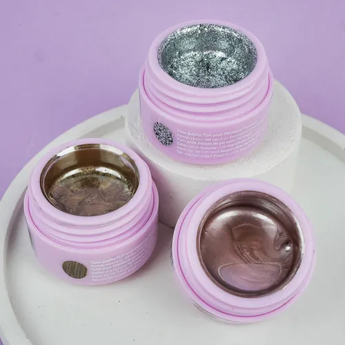 What to do if you want some unusual design on your nails? You can diversify your manicure with juicy and dazzling designs with the help of various technologies in neil-design. TUFI profi PREMIUM Gel Paint Platinum is a gel paint with glitter, intended for designs only. The paint is quite thick, perfect for painting compositions. It is not suitable for covering the entire nail, as well as for French. It can not produce voluminous designs and apply it roughly. It has high pigmentation and excellent density. With the help of this material you can give a flight of fancy and create a beautiful manicure, both in the salon professional, and at home.