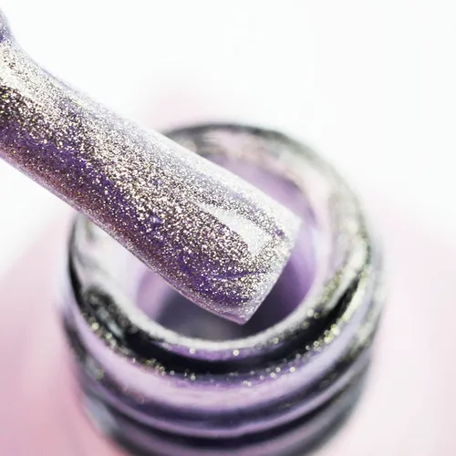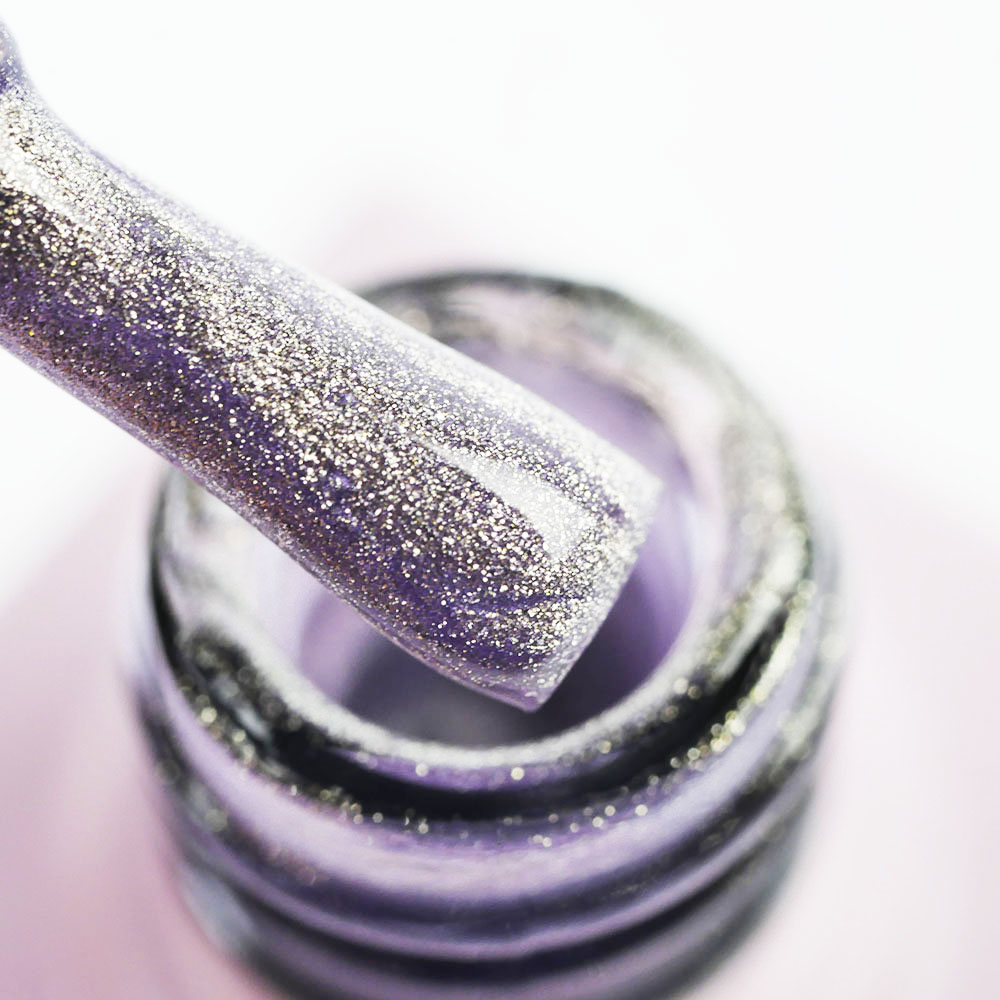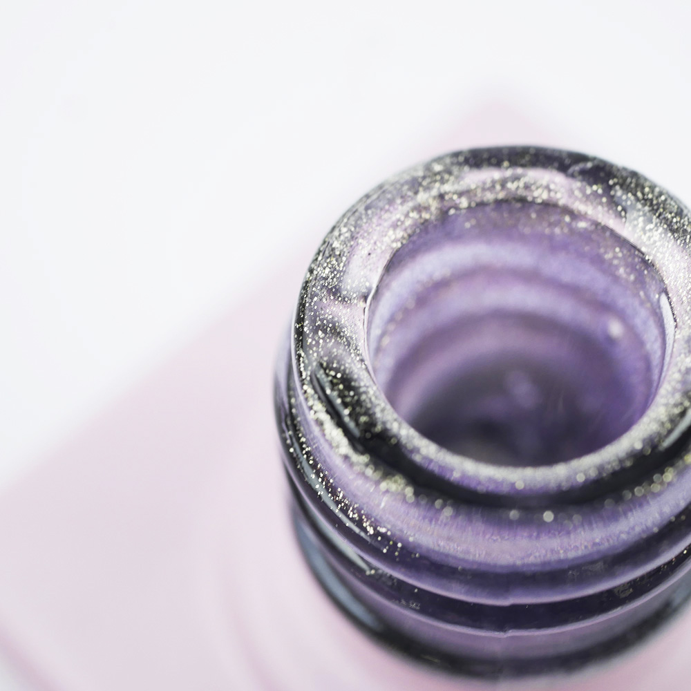 Гарна блискуча кішечка. Має фіолетову основу і золотисті блискітки, які добре піддаються магніту. Легкого наноситься і гарно просихає