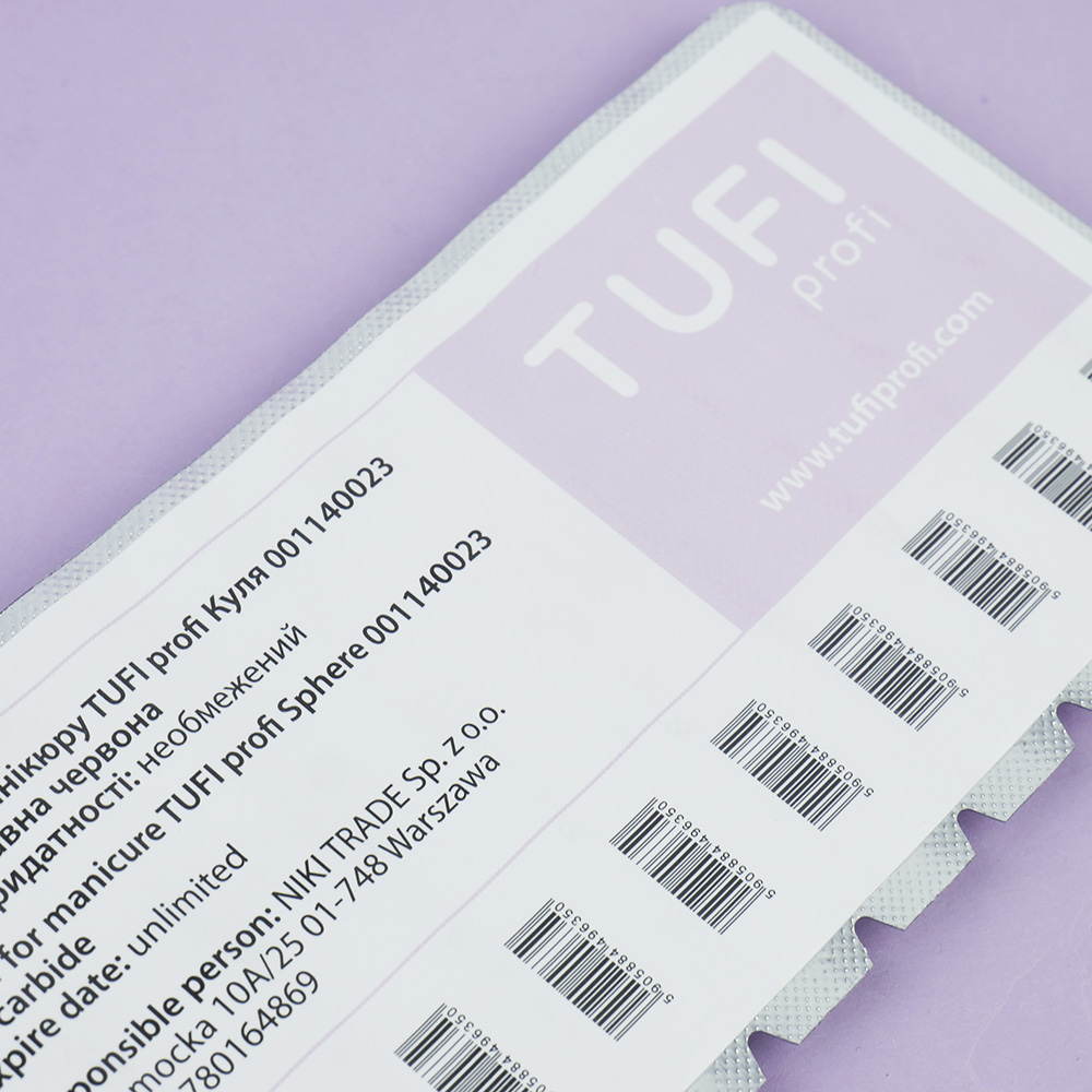 Most nail technicians have long adopted the technique of electric manicure. Using this method, the process of the manicure itself is accelerated and becomes of the highest quality. TUFI profi milling bits come in a variety of sizes, shapes, and materials. The ball-shaped manicure cutter is designed to treat deep calluses, hyperkeratotic feet, and to remove fungal nails. The bits can be disinfected in autoclaves and dry heat sterilizers. TUFI profi is a modern Ukrainian brand of cosmetics for home care, as well as products for beginners and experienced nail technicians of various qualifications. All products undergo thorough testing and certification.