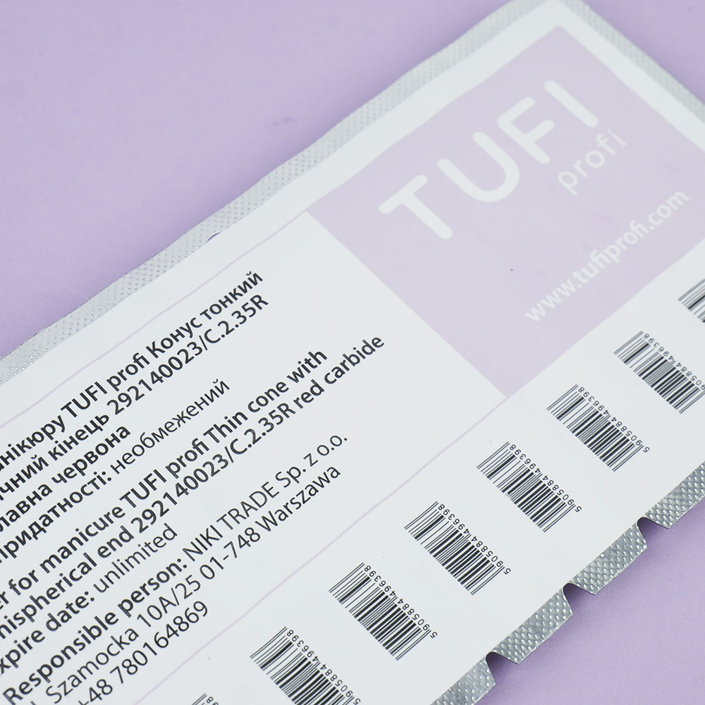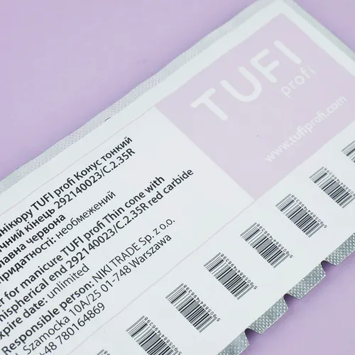 Most nail technicians have long adopted the technique of electric manicure. Using this method, the process of the manicure itself is accelerated and becomes of the highest quality. TUFI profi milling bits come in a variety of sizes, shapes, and materials. This cutter is suitable for coating removal, correction of artificial nail plate, treatment of hyperkeratotic foot, removal of corns. The bits can be disinfected in autoclaves and dry heat sterilizers. TUFI profi is a modern Ukrainian brand of cosmetics for home care, as well as products for beginners and experienced nail technicians of various qualifications. All products undergo thorough testing and certification.
