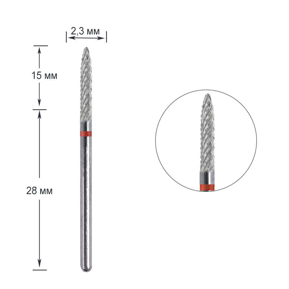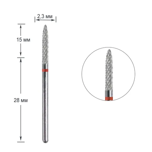 Фреза твердосплавна "Конус тонкий, напівсферичний кінець" -292 140 023/C.2.35R, червона