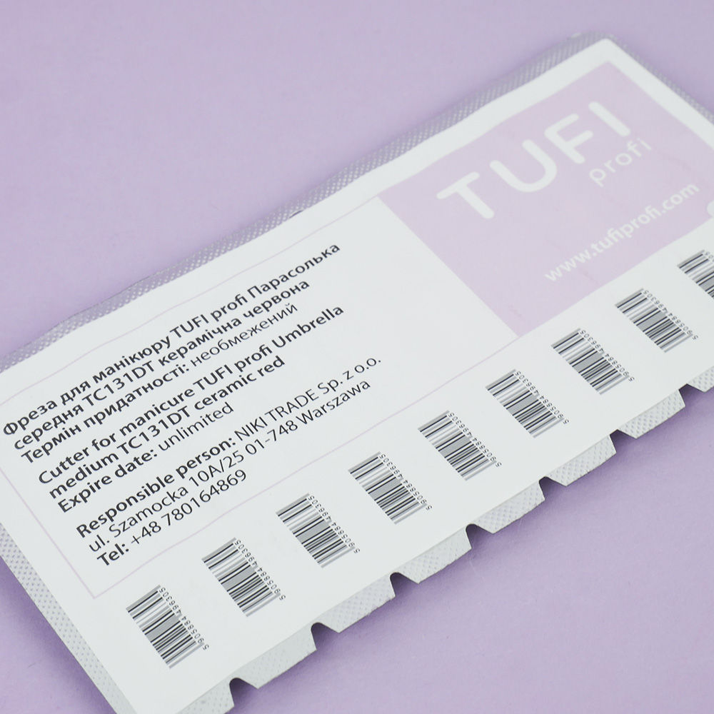 Most nail technicians have long switched to the electric manicure technique. Using this method, the process of the manicure itself is accelerated and becomes of the highest quality. TUFI profi milling bits come in various sizes, shapes, and materials. The ceramic manicure bit is suitable for removing rough skin, hangnails, treating sidewalls, removing gel or gel polish, and shaping the free edge of the nail. The bits can be disinfected in autoclaves and dry heat sterilizers. TUFI profi is a modern Ukrainian brand of cosmetics for home care, as well as products for beginners and experienced nail technicians of various qualifications. All products undergo testing and certification.