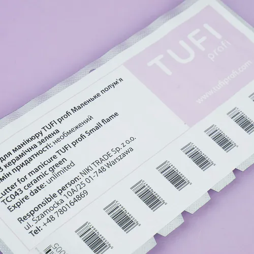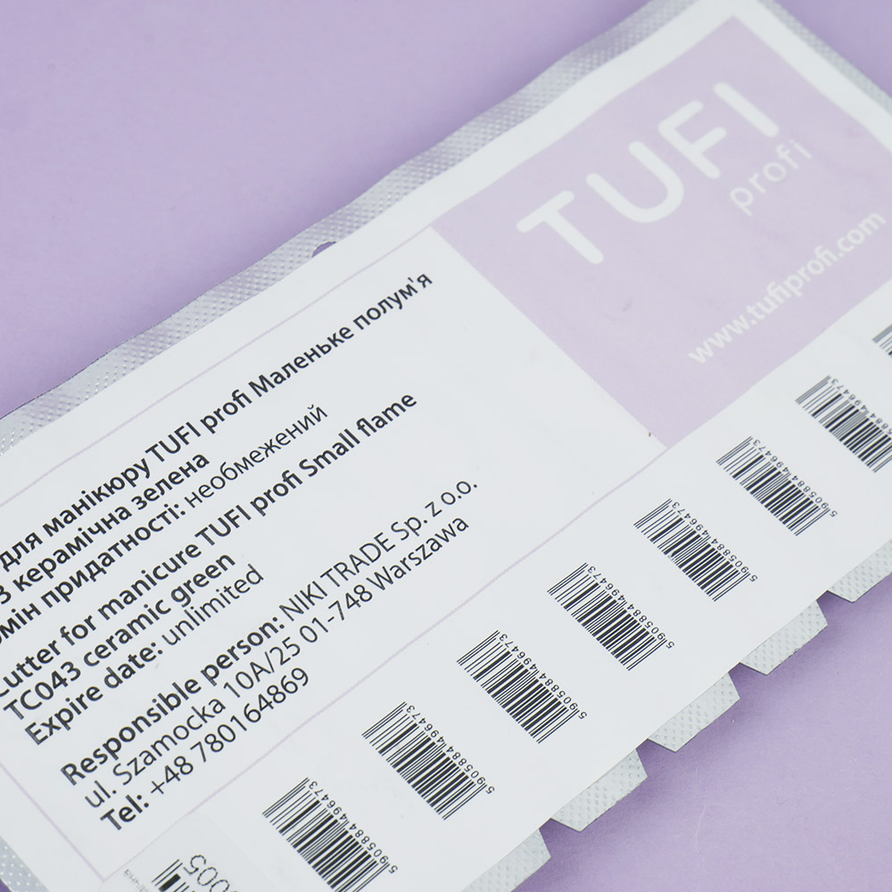 Most nail technicians have long switched to the electric manicure technique. Using this method, the process of the manicure itself is accelerated and becomes of the highest quality. TUFI profi milling bits come in various sizes, shapes, and materials. The ceramic manicure bit is suitable for removing rough skin, hangnails, treating sidewalls, removing gel or gel polish, and shaping the free edge of the nail. The bits can be disinfected in autoclaves and dry heat sterilizers. TUFI profi is a modern Ukrainian brand of cosmetics for home care, as well as products for beginners and experienced nail technicians of various qualifications. All products undergo testing and certification.