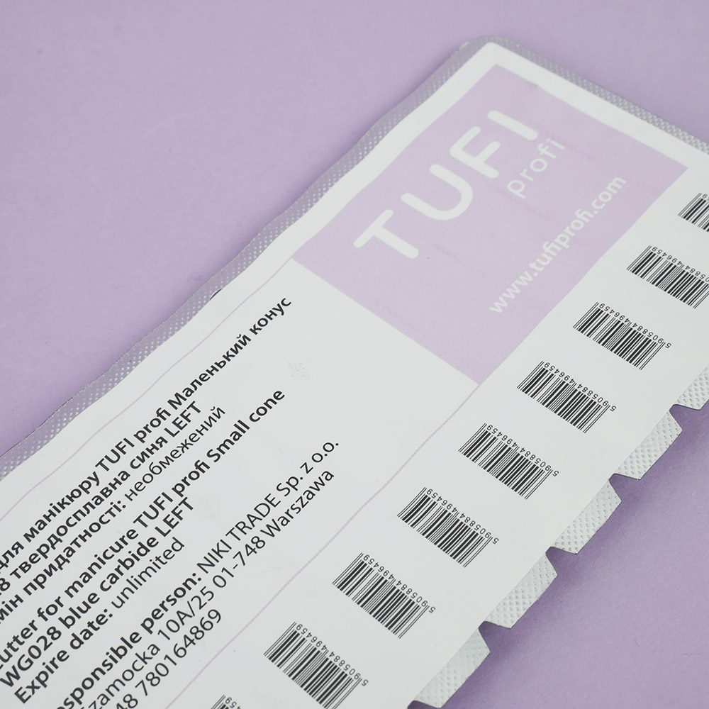 Most nail technicians have long adopted the technique of electric manicure. Using this method, the process of the manicure itself is accelerated and becomes of the highest quality. TUFI profi milling bits come in a variety of sizes, shapes, and materials. This particular bit is suitable for both natural and artificial nails and is also excellent for cleaning during pedicure procedures. Its convenient shape allows for thorough cleaning of the nail plate and easy access to hard-to-reach areas. The manicure cutter is made for all true left-handers - carbide tips with reverse notching. The bits can be disinfected in autoclaves and dry heat sterilizers. TUFI profi is a modern Ukrainian brand of cosmetics for home care, as well as products for beginners and experienced nail technicians of various qualifications. All products undergo thorough testing and certification.