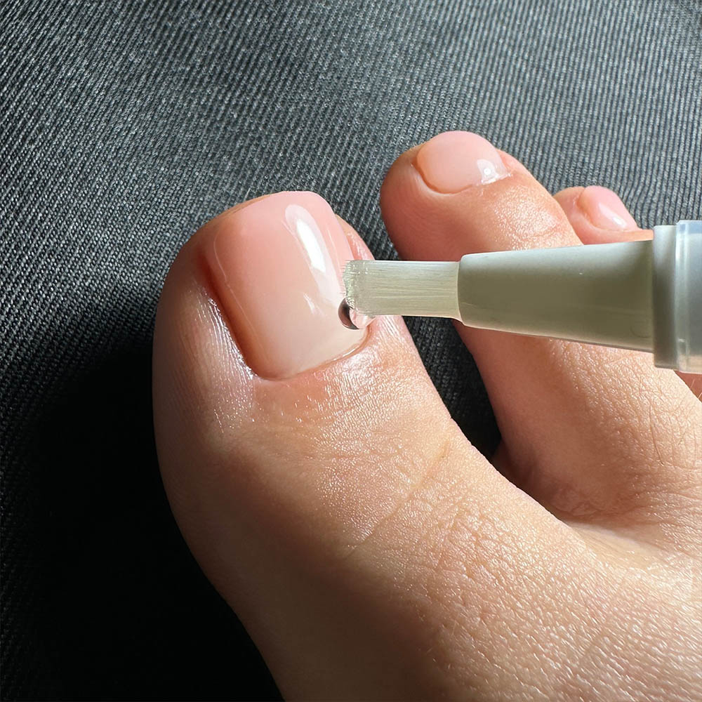 - Apply a small amount of oil to dry, clean cuticles and the skin around the nail.