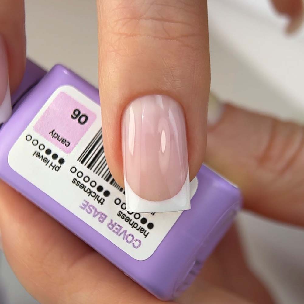 Cover Base TUFI profi Cover base 06 Candy has a comfortable consistency, spreads evenly, tones the nail, and hides imperfections. It is not thick, easy to work with, and creates a trendy natural coating without overloading.