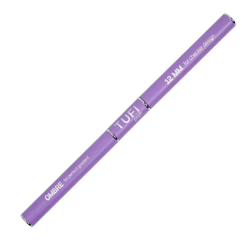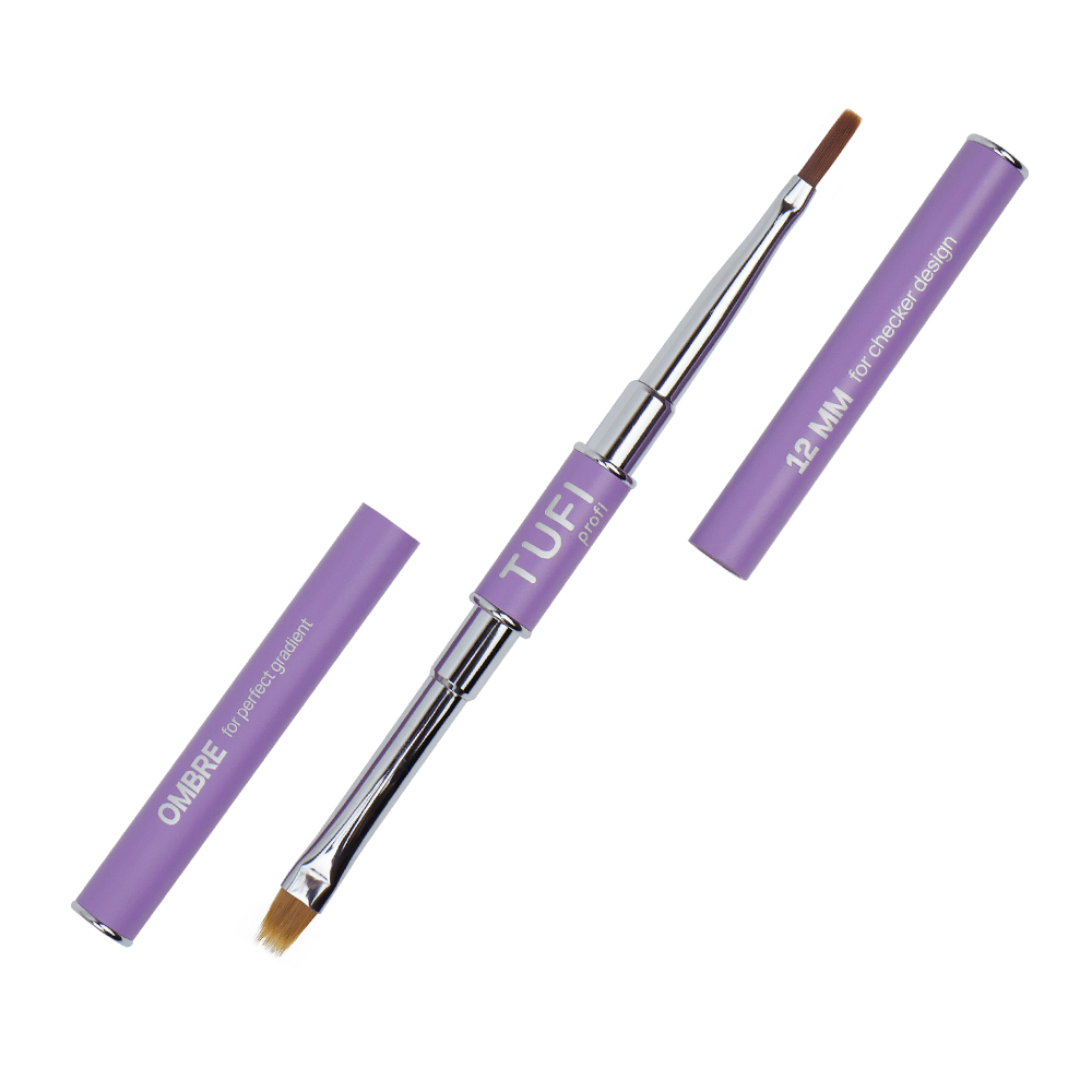 Double-Ended Nail Brush TUFI profi Ombre / Wide Stripes is a professional double-sided brush TUFI profi Ombre / Checker design — a modern, thoughtfully designed tool for creating gradient nail art, working with wide lines, and applying gel materials. The 2-in-1 format combines an ombre brush and a flat brush, replacing two separate tools and allowing for faster and more precise work. One side is designed for ombre designs. The optimal bristle length ensures a smooth and even gradient without trimming or additional manipulation. The other side features a flat rectangular brush with elongated bristles. It is ideal for even application of color or base, full coverage of the nail plate without streaks or gaps, French manicure, graphic and checker designs, as well as leveling or removing excess material from the underside of the nail when working with upper forms.