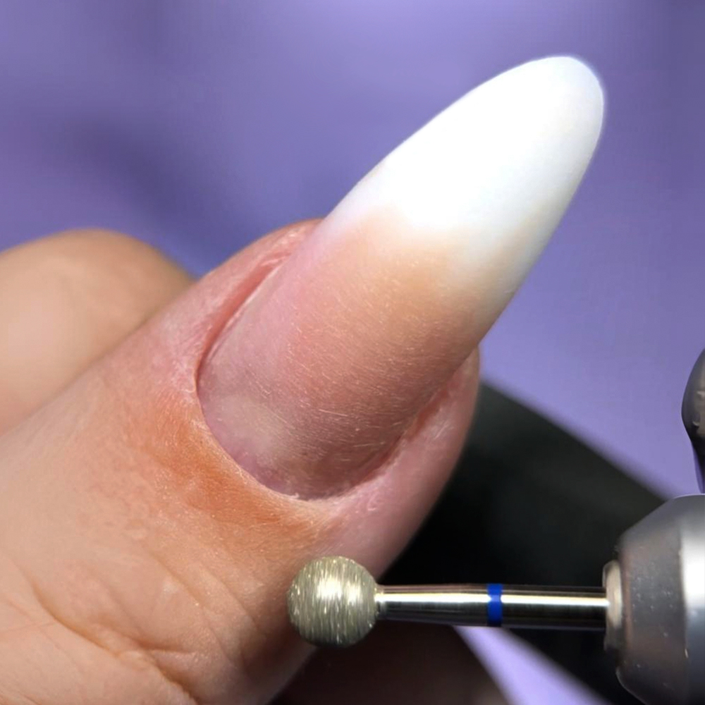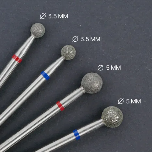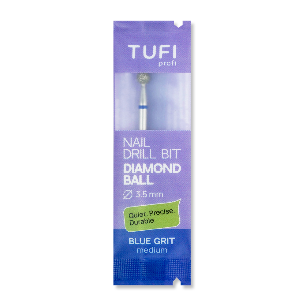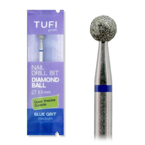 Diamond drill bit TUFI profi Diamond Ball with a diameter of 3.5 mm and blue grit is designed for gentle cuticle removal, smoothing hangnails, sidewalls, and dry skin around the nail. The ball shape allows safe and precise work in the cuticle area, ensuring a clean and controlled result. The soft abrasiveness (red grit) makes the bit suitable for thin and sensitive skin. The bit delicately treats sidewalls, hangnails, and the skin around the nail, and is also used for cutting the previously lifted cuticle “skirt” in e-file manicures. Even diamond coating ensures smooth operation without overheating or skin damage. The bit features a long service life and maintains its working properties after disinfection and sterilization.