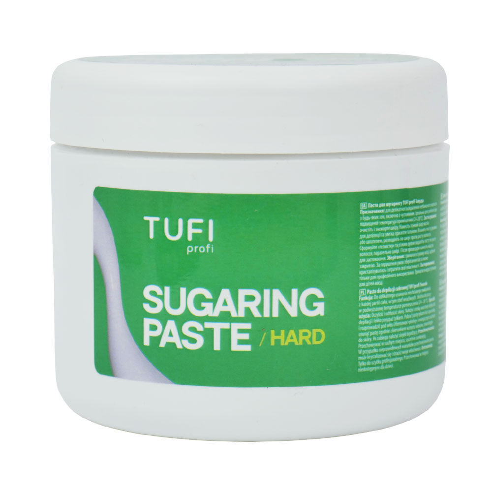 TUFI profi Hard Sugaring Paste is a professional product designed for confident and controlled hair removal in challenging areas, especially in warm environments and with increased skin moisture. The TUFI profi sugar paste line is developed with consideration of room temperature, hair type, treatment area, and skin moisture level, allowing professionals to select the optimal density for stable and safe performance both in salons and at home. The hard paste is recommended for use at temperatures of 24–28 °C and above, suitable for coarse, dense hair and clients with excessive perspiration. Ideal for bikini and underarm areas.