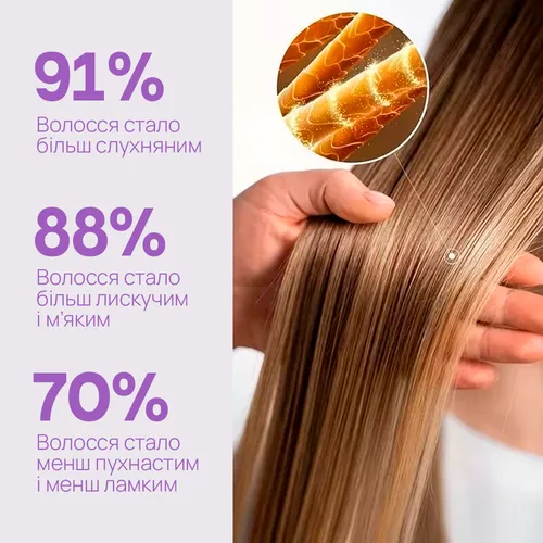 - Purple — care for colored hair. Helps maintain color brightness, nourishes the hair, and makes it smoother and more manageable.