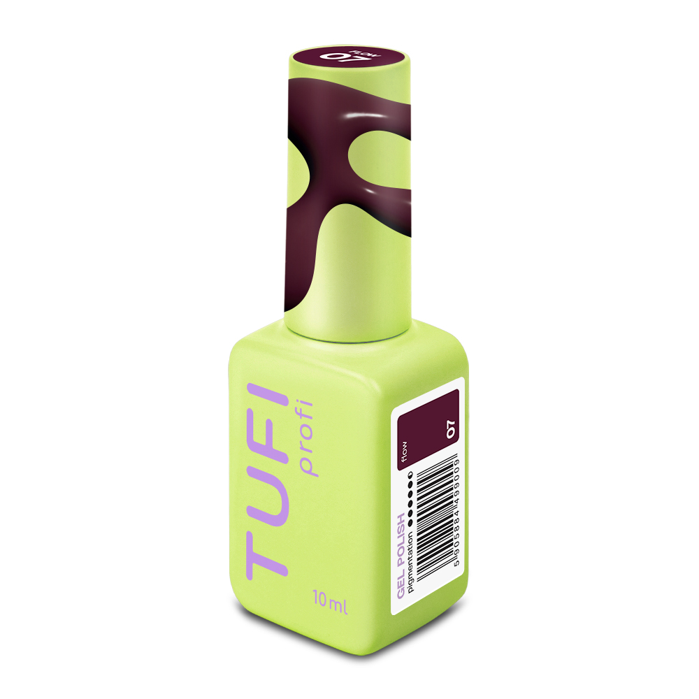 TUFI profi REDLINE 07 Flow Dark Burgundy Gel Polish is a professional gel polish with a rich wine shade, high pigmentation, and a comfortable consistency for precise application.