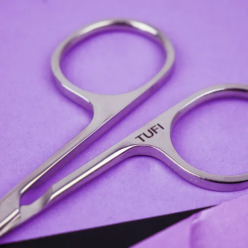 Cuticle scissors TUFI profi made of high-quality stainless steel H-100 - designed for professional use by nail technicians as well as convenient work at home. Made of high-quality medical stainless steel 40/13, they withstand all types of sterilization and disinfection, maintaining perfect sharpness for a long time. The 25 mm cutting part is equipped with reinforced blades with a slight curve and a safe rounded tip, allowing you to gently remove the cuticle or free nail edge without the risk of damage or splitting. Thanks to the ergonomic handle shape, the scissors fit comfortably in the hand and provide maximum control during work. The classic size (100 mm) makes the tool universal, suitable for both manicure and pedicure. The scissors have professional hand sharpening using a special technology and are ready for use immediately after unpacking.