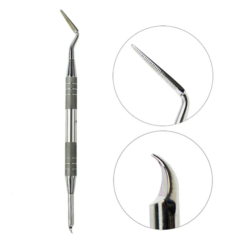 Rasp-claw TUFI profi PREMIUM is a professional tool that is designed for unedged manicure and pedicure, or rather, to remove rough skin and the problem of ingrown nails. This manicure tool has two working parts, a rasp and a claw. Rasp (angle nail files) - without any extra effort will help eliminate the problem of an ingrown nail, process the sides of the nail plate and thoroughly clean the subungual space. Claw - designed to quickly and effectively deal with the problem of an ingrown nail, completely removing it. The material of the tool is made of stainless steel, which can be disinfected in a sterilizer.
