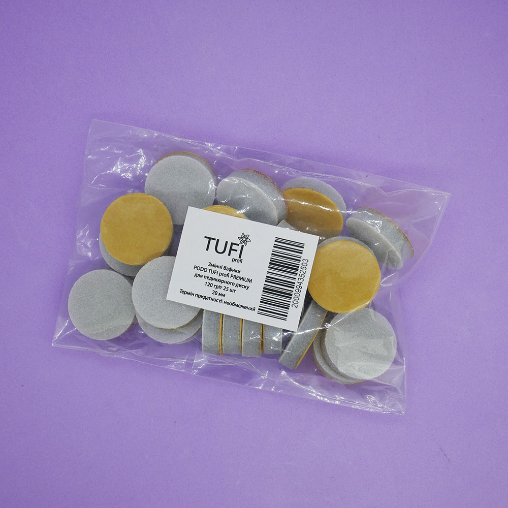 Replaceable buffs Podo TUFI profi PREMIUM for pedicure disk 20 mm 120 grit 25 pcs (0101571)