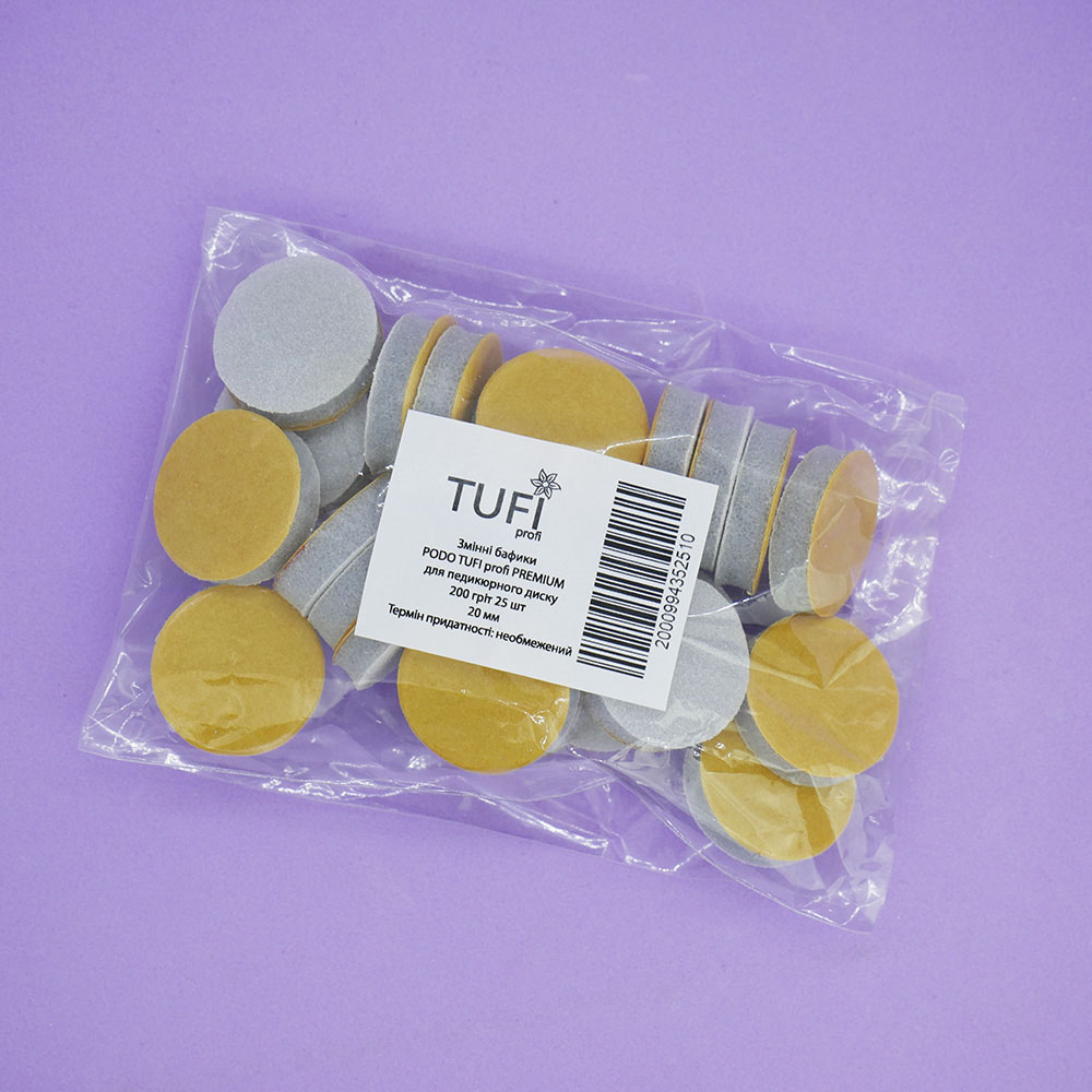 Replaceable buffs Podo TUFI profi PREMIUM for pedicure disk 20 mm 200 grit 25 pcs (0101572)