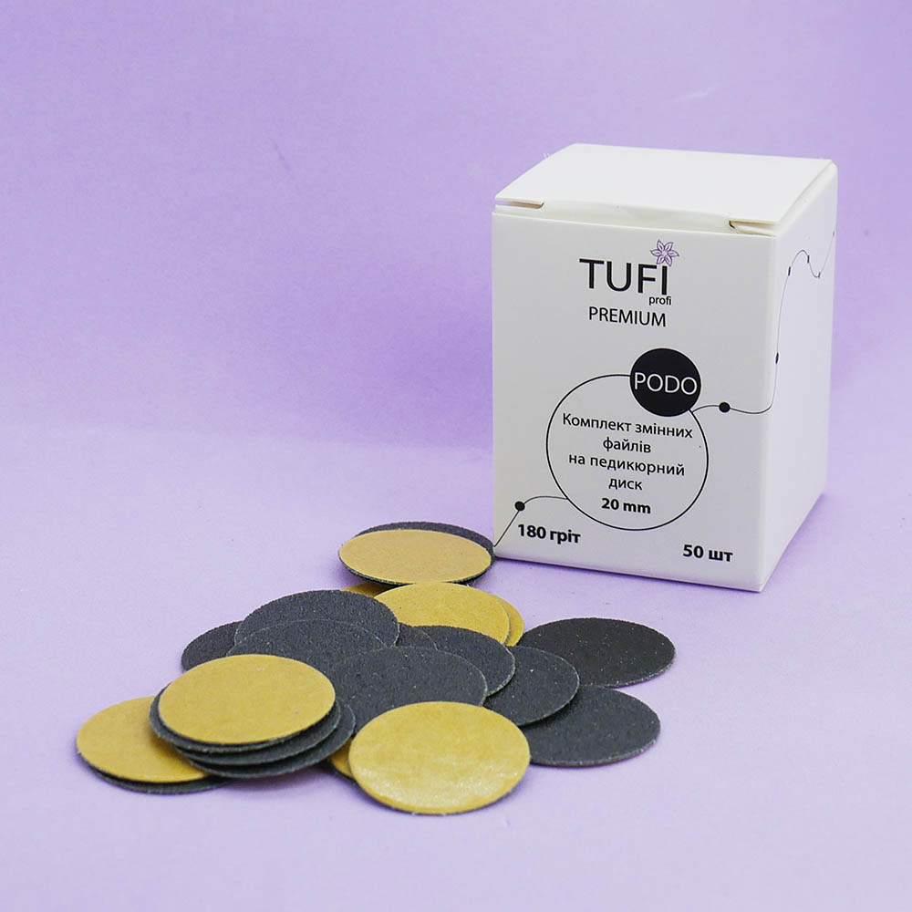 Podo TUFI profi PREMIUM replaceable files for pedicure disk 20 mm 180 grit 50 pcs (0101569)