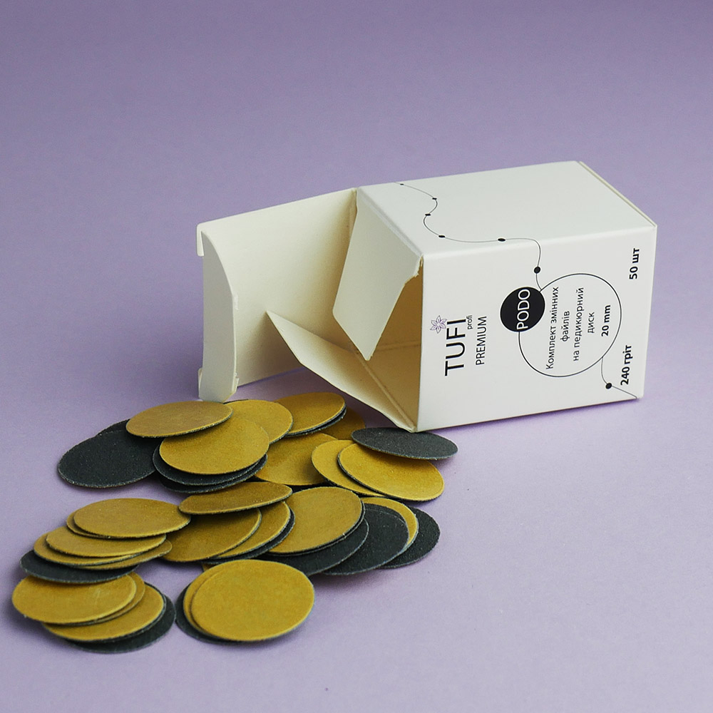 Podo TUFI profi PREMIUM replaceable files for pedicure disk 20 mm 240 grit 50 pcs (0101570)