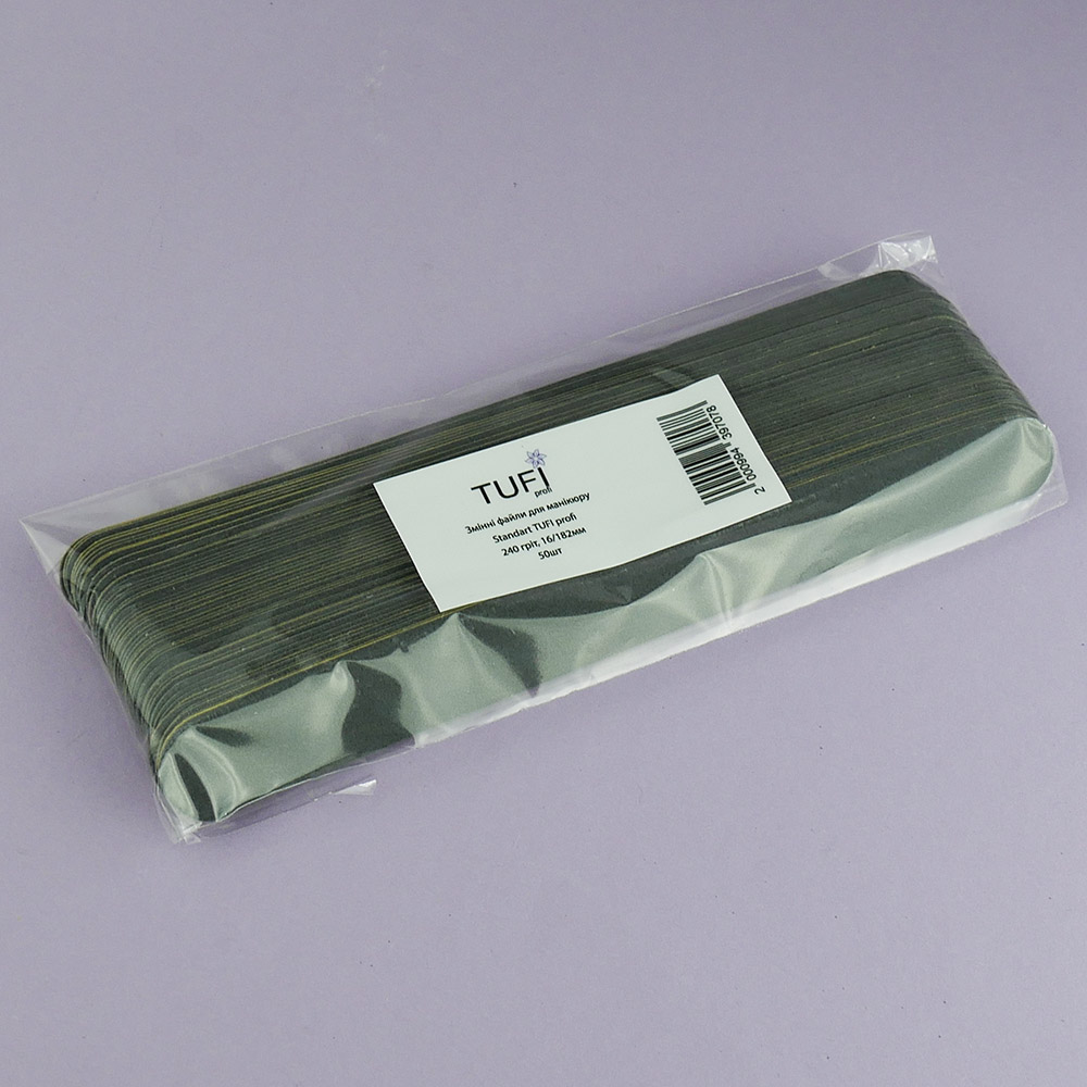 TUFI PROFI Standard 240 grit are professional thin replaceable abrasive files designed for precise and controlled work in manicure and pedicure.