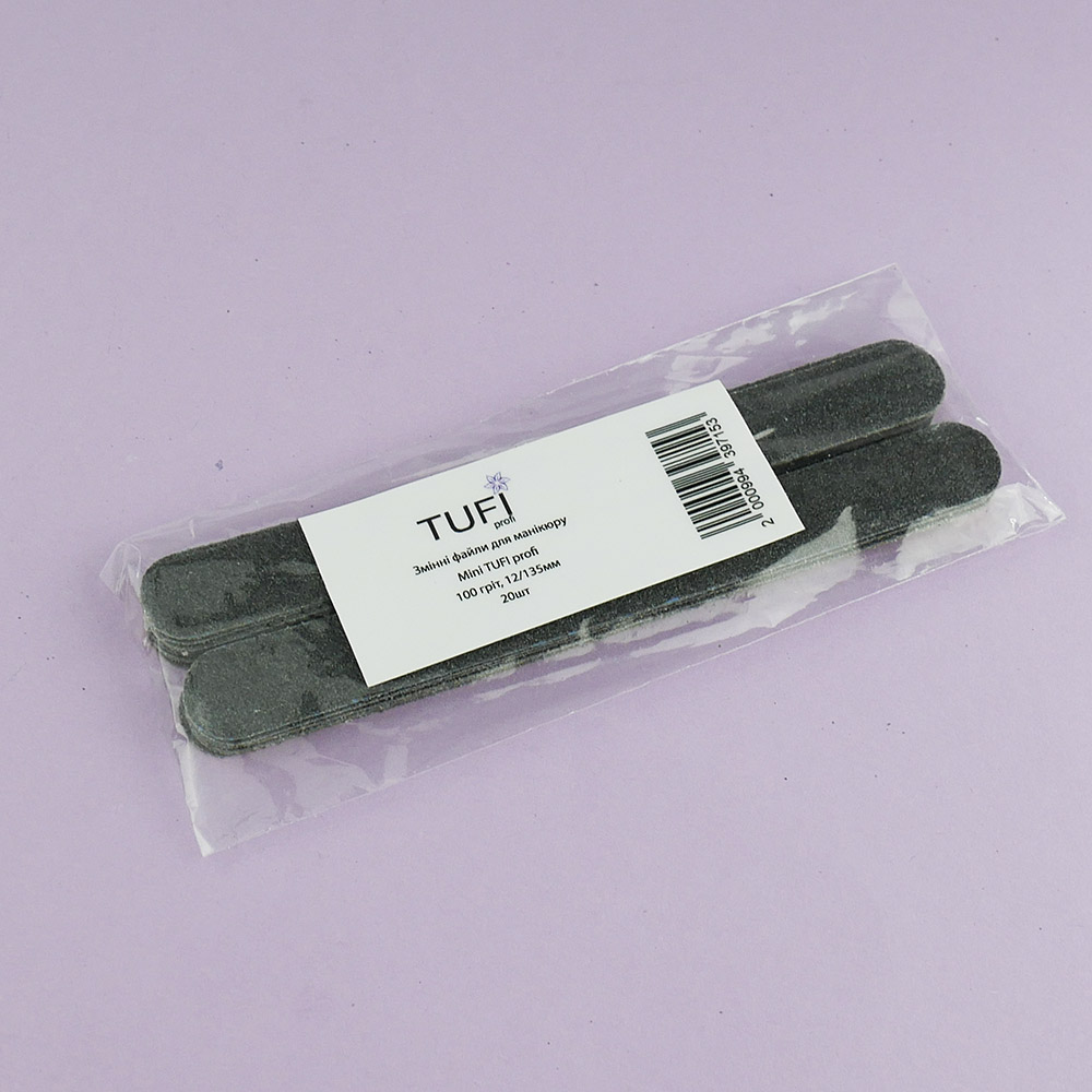 TUFI PROFI Standard 100 grit are professional thin replaceable abrasive files designed for precise and controlled work in manicure and pedicure.
