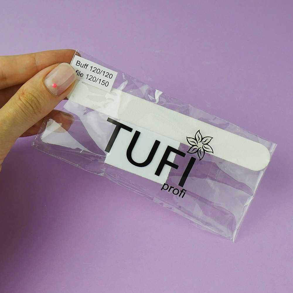 Disposable set TUFI profi PREMIUM nail file 120/150 and buff 120/120 white (0102944)