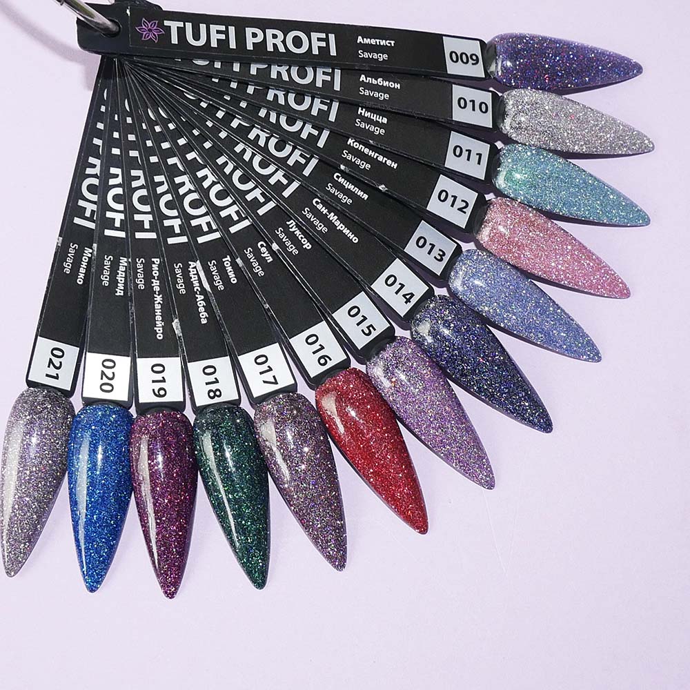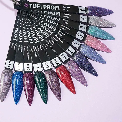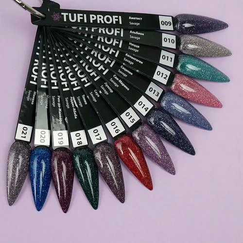TUFI profi PREMIUM presents a new, fashionable line of SAVAGE reflective gel polishes. When you look at this palette, you want to exclaim, "Why is glitter so beautiful?" Fascinating, amazing shades of gel polishes reflect rays of light. With the SAVAGE palette your beauty will be noticed even at night. Reflective gel polish TUFI profi PREMIUM change an ordinary manicure into something magical. SAVAGE is a fresh wind that will swirl in the dance of changes. It will allow you to show others what is hidden deep inside and become different for a moment. Be bright, be special - shine!