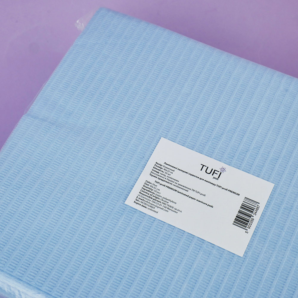 Disposable paper nail art table mat TUFI profi PREMIUM laminated waterproof blue 40х32 cm 50 pcs (0104201)