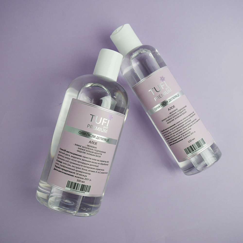 TUFI profi PREMIUM oil after depilation is intended for use after removing unwanted hair with wax, razor or other depilation methods. Oil after depilation helps to remove inflammation, irritation and reduces pain. Due to its excellent composition, the oil perfectly nourishes and moisturizes the skin. You can also purchase various products before and after depilation: gels, lotions, talc, cream, oil.
