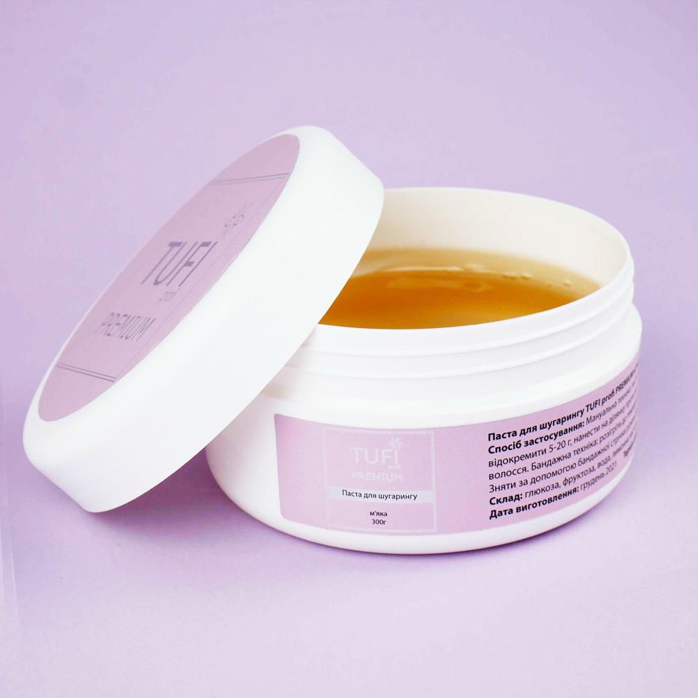 Sugaring paste TUFI profi PREMIUM soft is intended for the sugaring procedure, both at home and in a beauty salon. TUFI profi PREMIUM paste makes it easy to remove unwanted hair from any area (arms, legs, bikini, etc.). The tool is ideal for manual shugaring in cool rooms. It does not injure living skin cells and removes only the stratum corneum and hairs. Do not use the paste on injured skin. The paste can be applied to the same area of the skin several times. It is convenient to apply the sugaring paste with a special spatula, and remove hair with the help of depilatory strips.