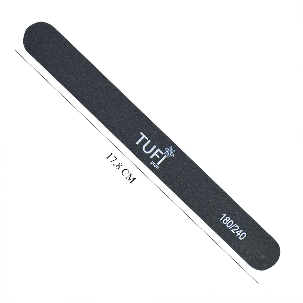 Straight nail file TUFI profi PREMIUM black 180/240, 17.8 cm 1 pc (0122191)