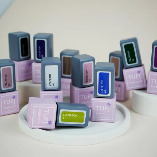 TUFI profi PREMIUM presents a new trend line of Color Tops. Bright, bold and tasteful! Any manicure will be unsurpassed with the TUFI profi colored top. This nail top is very easy to use. It has a durable coating, does not crack, does not roll, provides application with ease and pleasure. The top does not have a sticky layer, so it does not require stickiness removal. Due to the correct consistency, the top coat is easy to lay down on the nail, self-leveling on the nail plate, and also strengthens it. The product is very easy to use for beginners. Color tops TUFI profi will significantly reduce the time of work for each nail-master!