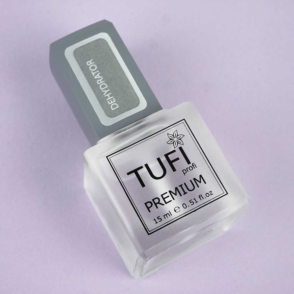 Для подготовки ногтевой пластины перед нанесением гель-лака используют специальное средство для обезжиривания. Dehydrator TUFI profi PREMIUM - это премиальное профессиональное средство, бережно обезжиривает ногти, при этом не вредит им. Жидкость для обезжиривания убирает остатки влаги с ногтевой пластины. После очищения ногтей с помощью дегидратора можно приступать к покрытию.