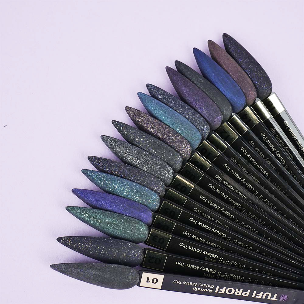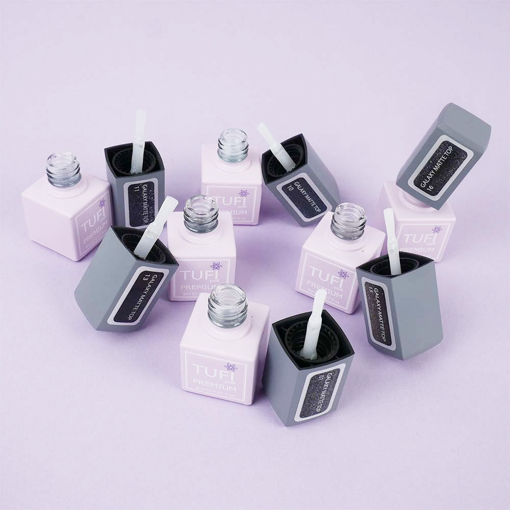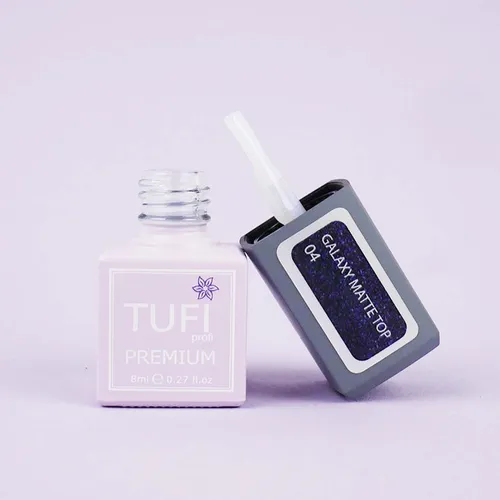 Топ TUFI profi PREMIUM Galaxy Matte Top - обновленный, улучшенный, совершенный топ для гель-лака, который создает качественное декоративное покрытие на натуральной ногтевой пластине. Финишное покрытие удобно в работе, равномерно обволакивает пластину твердой пленкой. Топ для гель-лака имеет густую консистенцию, не будет затекать на кутикулу и боковые валики. Топ TUFI profi PREMIUM Galaxy Matte Top лучше всего проявляет себя на темных оттенках, а на светлых еле заметен. Топ Туфи профи имеет стойкое покрытие, не трескается, не скатывается, обеспечивает нанесение с легкостью и удовольствием.