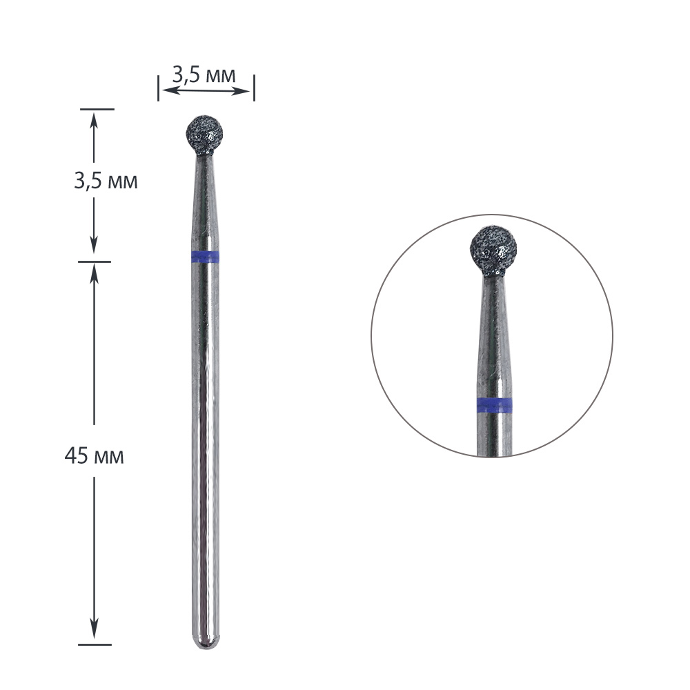 Фреза для маникюра TUFI profi Шар 001 035B диаметр 3,5 мм алмазная синяя