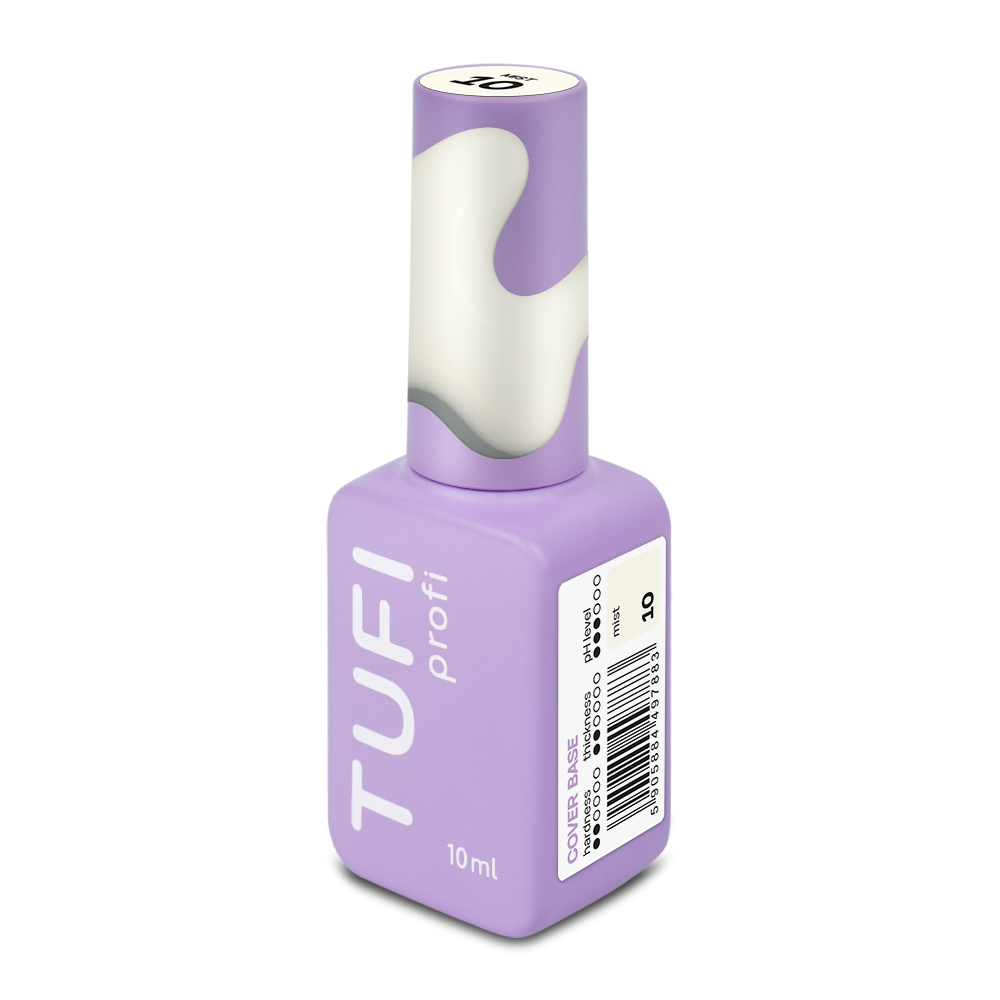 Cover-база TUFI profi Cover base 10 Mist удобной консистенции, идеально выравнивается, тонирует ноготь и скрывает его недостатки. Не густая, комфортная в работе, создаёт модное натуральное покрытие без перегрузки. Холодный молочно-серый оттенок с едва заметным желтоватым подтоном. Сдержанный, чистый, как утренний туман.