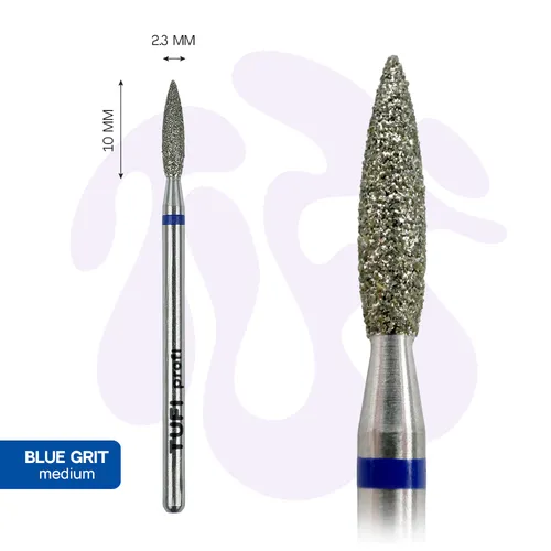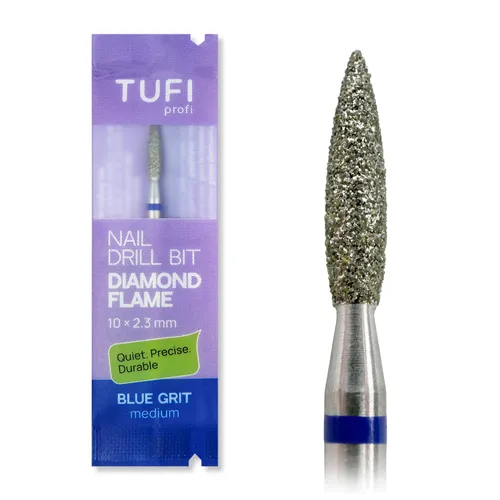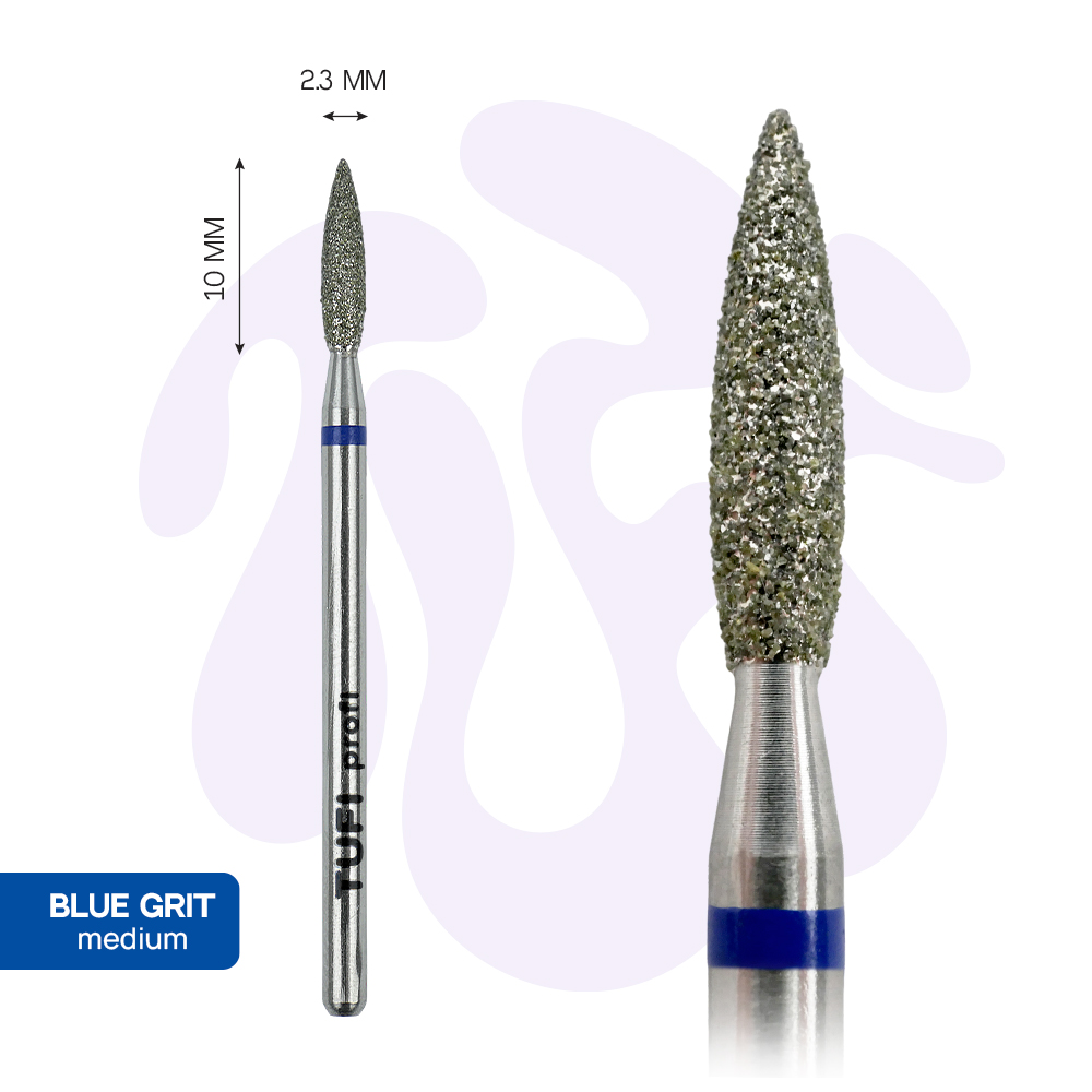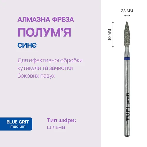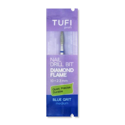 Фреза для маникюра TUFI profi Алмазная Пламя 10 mm × 2.3 mm Синяя Насечка (0328404)